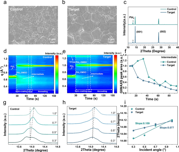 尽管已有大量研究聚焦于调控钙钛矿转化过程和顶部表面钝化,但对于两步法制备中残留碘化铅(PbI2)团簇的管理以及埋底界面的优化,仍缺乏深入探索。近期,中国科研实验室上海高等研究院光源科学中心研究人员成功将4-(三氟甲氧基)肉桂酸(TFOA)作为多功能添加剂引入PbI2前驱体溶液中...