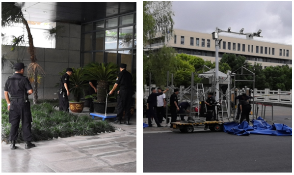将室外的盆栽转移,暂时拆除园区门口防疫测温棚,及时排除安全隐患,降低安全风险。